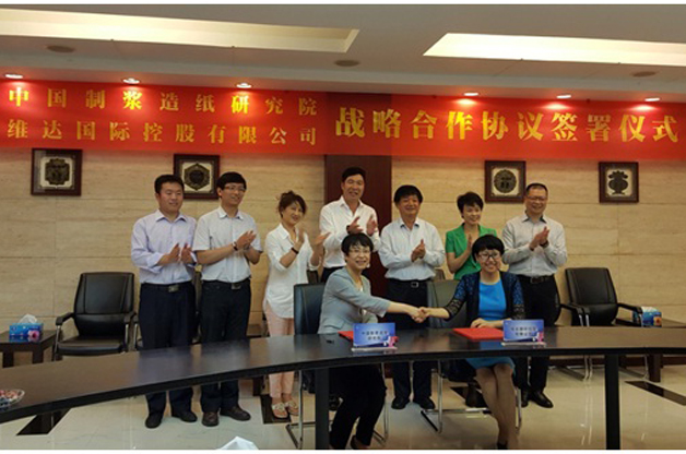 2016年5月27日,造紙院黨委書記、副院長孫波帶領研究開發(fā)部一行四人訪問位于廣東江門的維達國際控股有限公司總部,并代表造紙院與維達國際簽署戰(zhàn)略合作協(xié)議,雙方將在以木漿為原料的生活用紙領域開展包括市場與產品戰(zhàn)略分析、新產品開發(fā)、生產線技術支持、衛(wèi)生用紙專用化學品研制、技術人員培訓等內容在內的全面、深入合作。維達國際運營總裁王波代表維達方面簽署協(xié)議,中輕集團副總經(jīng)理、中國造紙協(xié)會生活用紙專業(yè)委員會主任曹振雷、維達國際董事局主席李朝旺出席簽字儀式并分別致辭。