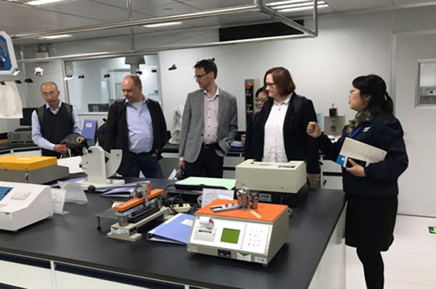 會談結(jié)束后,UPM集團(tuán)一行在實驗中心主任馮文英的陪同下參觀了制漿造紙國家工程實驗室。