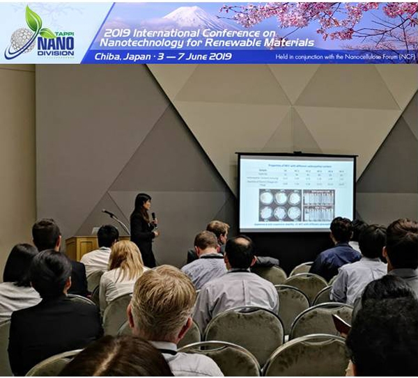 本次盛會(huì)有來(lái)自日本、美國(guó)、加拿大、挪威、荷蘭、瑞典等國(guó)的研究機(jī)構(gòu)以及納米纖維素生產(chǎn)企業(yè)的科技人員參加,大家匯聚一堂,交換研究成果,探討研究動(dòng)向。造紙?jiān)貉芯块_發(fā)部的陳京環(huán)博士以報(bào)告發(fā)言和墻報(bào)展示的方式,介紹了造紙?jiān)涸诩{米纖維素領(lǐng)域的研究進(jìn)展,并與參會(huì)專家進(jìn)行深入交流,對(duì)世界發(fā)達(dá)國(guó)家特別是日本在納米纖維素領(lǐng)域的基礎(chǔ)研究及工程化應(yīng)用的發(fā)展現(xiàn)狀進(jìn)行詳細(xì)了解。