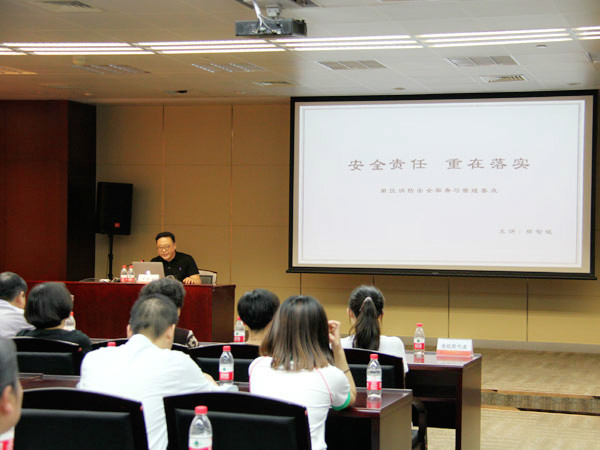 講座由北京市火災(zāi)防治中心主任、北京市政府安全建議人鄭智斌老師為大家講授。鄭智斌從“消防緒論、常規(guī)消防安全事務(wù)、單位消防安全管理要點(diǎn)、相關(guān)消防法規(guī)解析、火場求援及自救逃生”等五個方面,進(jìn)行了生動直觀的講解。他結(jié)合大量的火災(zāi)案例,以理論知識與實(shí)戰(zhàn)技能相結(jié)合的方式對日常工作生活環(huán)境中存在的火災(zāi)隱患、錯誤認(rèn)識和不當(dāng)操作等知識進(jìn)行普及。