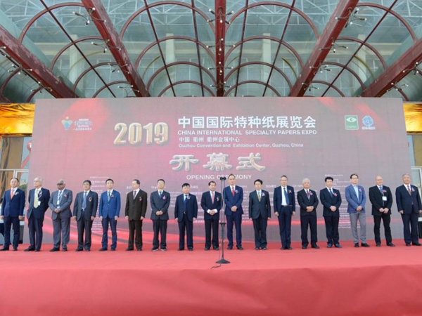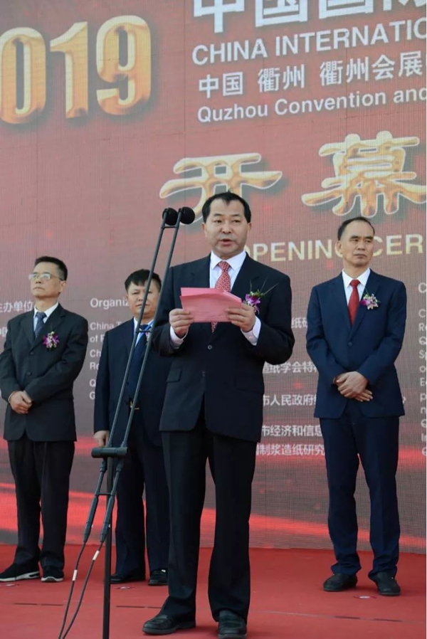 10月16日,郭建全、王珂靈、任建平、造紙院董事長曹春昱、孫波等出席 “2019中國國際特種紙展覽會開幕式”,郭建全致開幕辭。郭建全在致辭中分別對參會嘉賓的出席和衢州市政府的大力支持表示歡迎和感謝,對特紙展會為特種紙產(chǎn)業(yè)的發(fā)展和技術進步所做出的貢獻表示肯定。