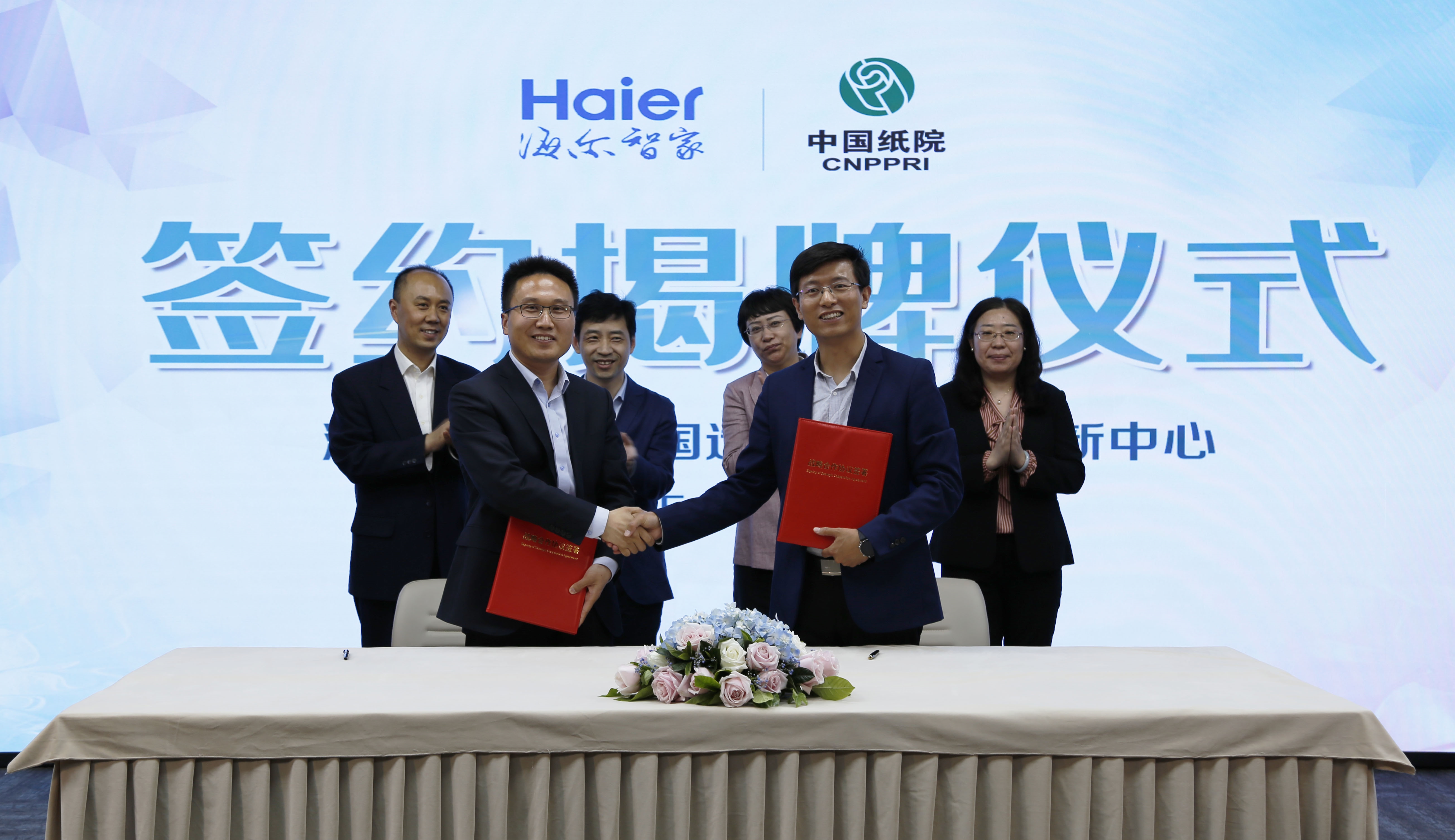 5月11日,海爾智家股份有限公司(以下簡稱“海爾智家”)HOPE平臺總經(jīng)理滕東暉、海爾智家超前研發(fā)總經(jīng)理勞春峰、海爾智家HOPE平臺總工程師萬新明等一行8人到訪中國造紙院。中國造紙院總經(jīng)理孫波、副總經(jīng)理劉俊杰、副總經(jīng)理田超攜紙基功能材料等研發(fā)創(chuàng)新團隊與滕東暉一行交流會談。在雙方項目團隊共同見證下,田超和勞春峰分別代表中國造紙院和海爾智家共同簽署戰(zhàn)略合作協(xié)議;孫波和滕東暉共同為“海爾智家—中國造紙院聯(lián)合創(chuàng)新中心”揭牌。