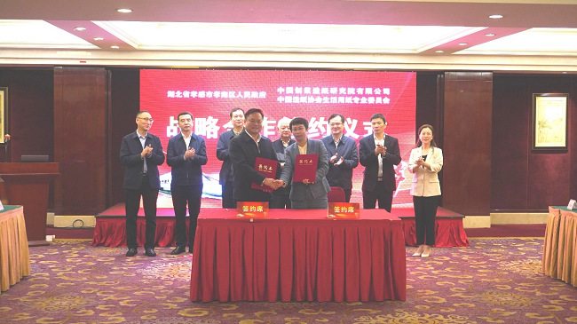隨后,中國造紙院、生活用紙專業(yè)委員會與孝南區(qū)人民政府在會議現(xiàn)場舉行了戰(zhàn)略合作簽約儀式。