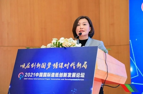 金光集團(tuán)APP(中國(guó))副總裁翟京麗的報(bào)告主題為“紙業(yè)實(shí)現(xiàn)碳中和:挑戰(zhàn)與突破”。翟京麗副總裁在報(bào)告中指出,作為資源和能源消耗和排放大戶的造紙行業(yè),要在滿足不斷增長(zhǎng)的市場(chǎng)需求的同時(shí)實(shí)現(xiàn)碳達(dá)峰和碳中和目標(biāo),那么低碳循環(huán)綠色發(fā)展將是造紙產(chǎn)業(yè)發(fā)展的必由之路;分享了APP(中國(guó))是如何通過(guò)林、漿、紙一體化及科學(xué)營(yíng)林實(shí)現(xiàn)擴(kuò)容綠色循環(huán)“源頭活水”,把握碳中和先行優(yōu)勢(shì);倡導(dǎo)企業(yè)應(yīng)大力推進(jìn)數(shù)字化、智能化,為碳中和目標(biāo)提供機(jī)制保障。