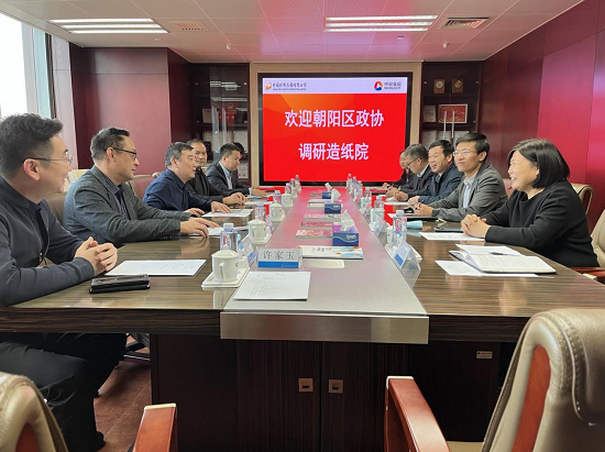 12月22日下午,北京市朝陽(yáng)區(qū)政協(xié)副主席趙年生、朝陽(yáng)區(qū)政協(xié)專委會(huì)第四室主任李賀清,攜東湖街道工委書記谷雨、辦事處主任武寧,朝陽(yáng)園管委會(huì)副主任王熙、朝陽(yáng)園管委會(huì)創(chuàng)新處處長(zhǎng)劉星川等一行8人到訪中國(guó)造紙?jiān)鹤咴L調(diào)研。中國(guó)造紙?jiān)焊笨偨?jīng)理田超攜院辦公室、人事教育部、財(cái)務(wù)部、格瑞物業(yè)公司等負(fù)責(zé)人參加座談。