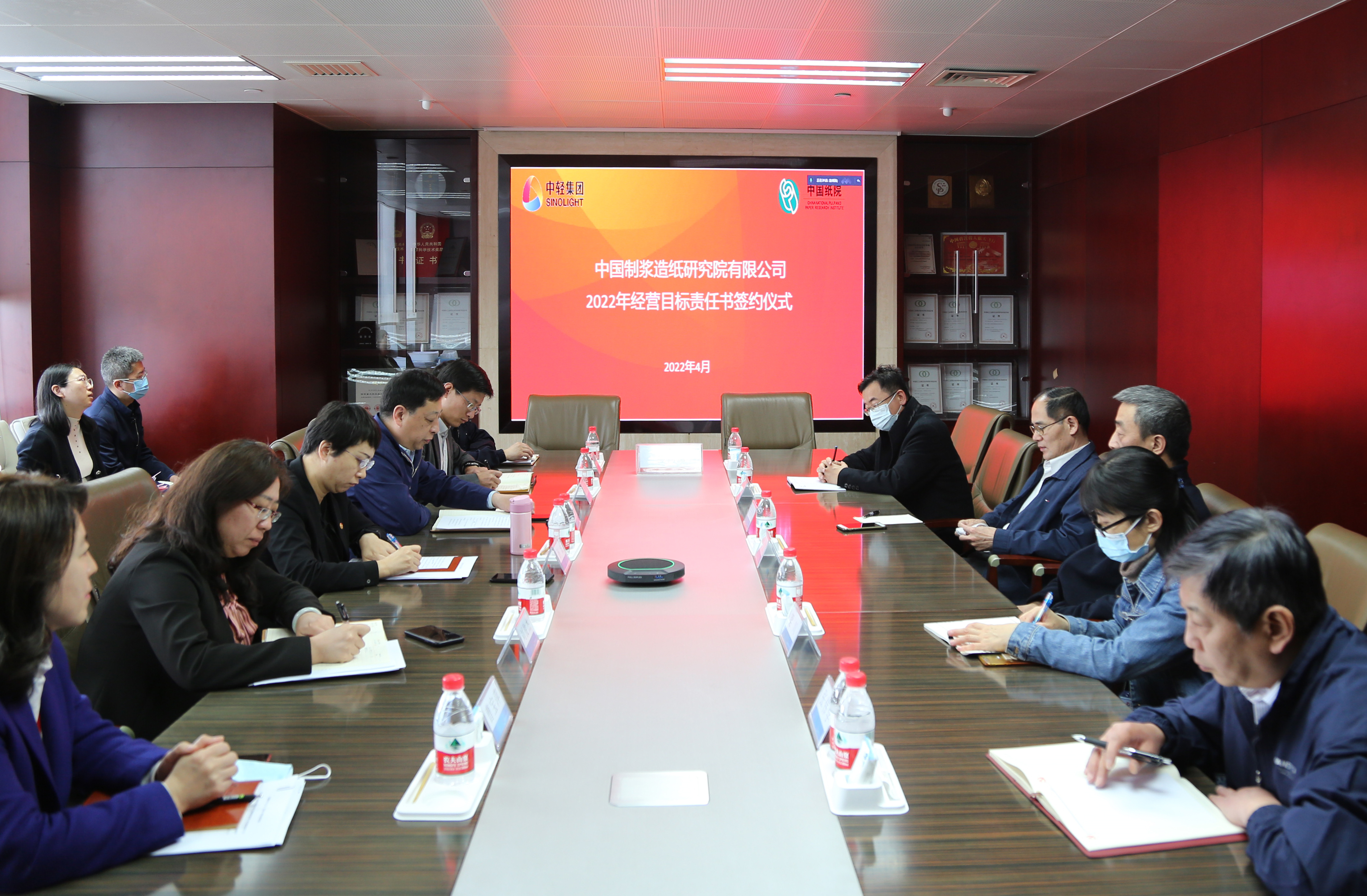 4月7日,中國(guó)造紙?jiān)号e行2022年度經(jīng)營(yíng)目標(biāo)責(zé)任書簽約儀式。此次經(jīng)營(yíng)目標(biāo)責(zé)任書的簽訂,覆蓋子分公司、事業(yè)部及業(yè)務(wù)部門。中國(guó)造紙?jiān)侯I(lǐng)導(dǎo)班子及本部各部門負(fù)責(zé)人、在京子公司主要負(fù)責(zé)人現(xiàn)場(chǎng)參會(huì),京外子分公司視頻參會(huì)。簽約儀式由紀(jì)委書記劉波主持。