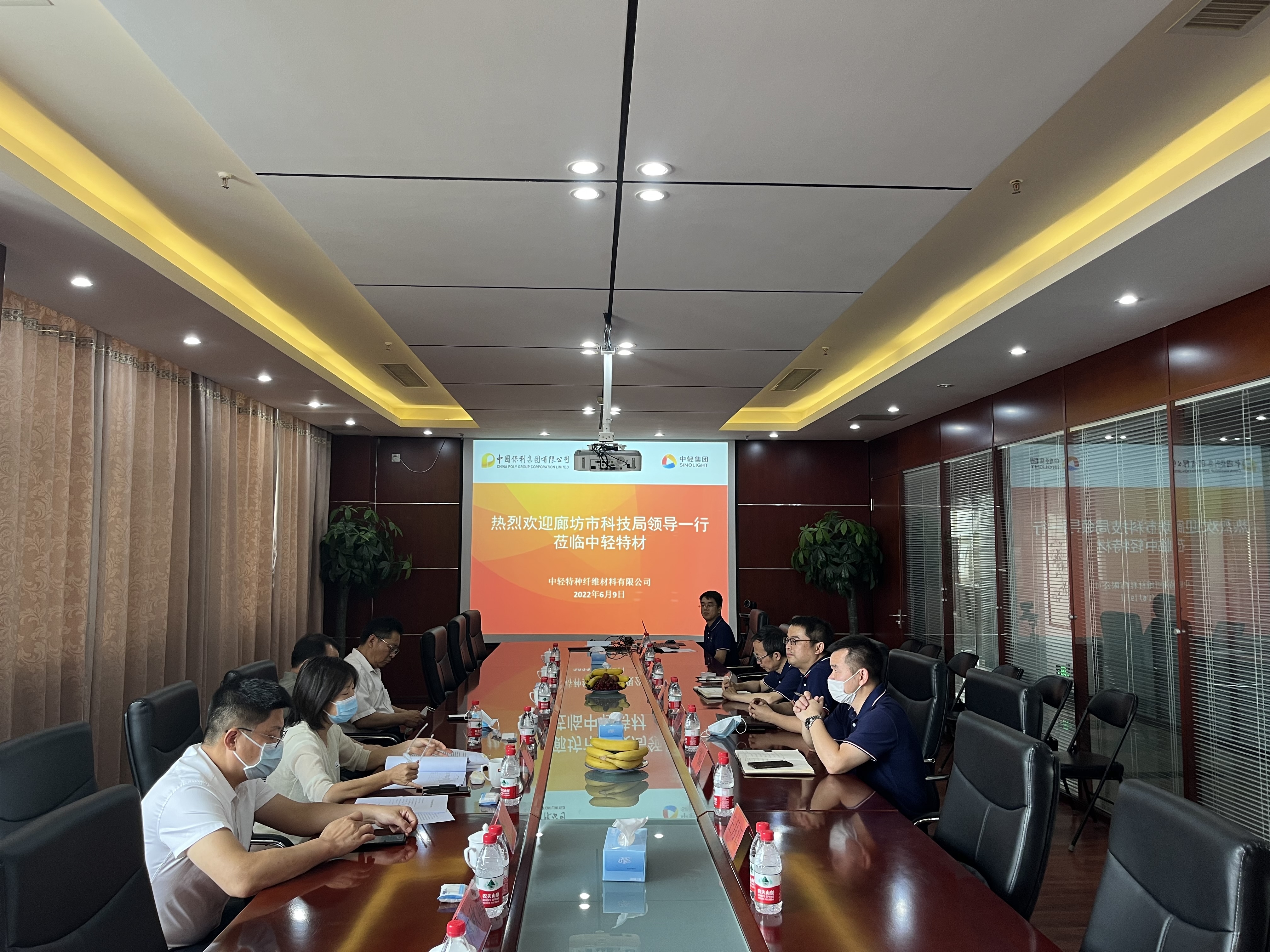 6月9日,河北省廊坊市科技局黨組書(shū)記、局長(zhǎng)洪江,市科技局黨組成員、副局長(zhǎng)、高科辦專(zhuān)職副主任榮華磊,市科技局成果轉(zhuǎn)化與區(qū)域創(chuàng)新處、監(jiān)督評(píng)估處及廊坊經(jīng)濟(jì)技術(shù)開(kāi)發(fā)區(qū)發(fā)展改革和科技創(chuàng)新局相關(guān)領(lǐng)導(dǎo)一行蒞臨中國(guó)造紙?jiān)核鶎僦休p特種纖維材料有限公司(以下簡(jiǎn)稱(chēng)“中輕特材”)調(diào)研考察。中輕特材總經(jīng)理趙濤攜領(lǐng)導(dǎo)班子成員和中國(guó)造紙?jiān)杭埢δ苄虏牧鲜聵I(yè)部成員接待了洪江一行,并進(jìn)行了相關(guān)調(diào)研項(xiàng)目情況匯報(bào)。