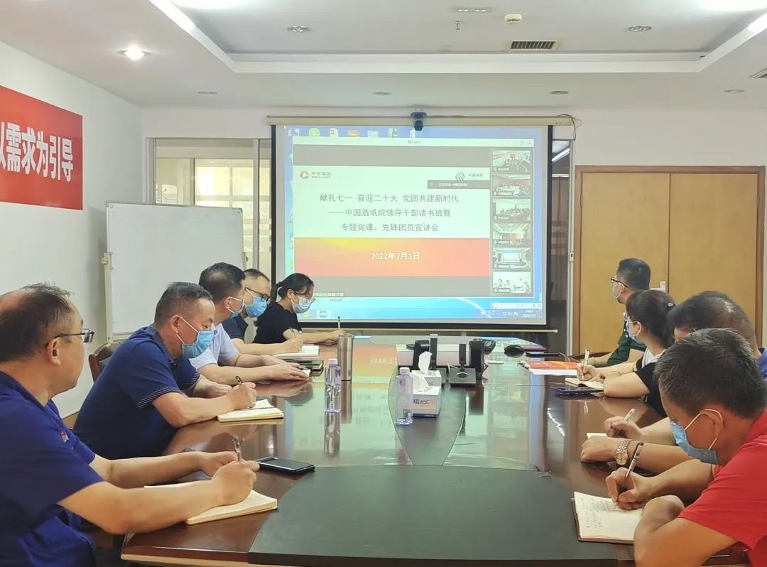7月1日,中國造紙院召開“獻禮七一 喜迎二十大 黨團共建新時代——中國造紙院領(lǐng)導干部讀書班暨專題黨課、先鋒團員宣講會”,隆重慶祝中國共產(chǎn)黨建黨101周年華誕。會議由院黨委委員、紀委書記劉波主持,院黨委委員、總經(jīng)理助理、在京黨支部書記、團委書記、團委委員、團支部書記、團員青年在院本部現(xiàn)場參會,各子分公司班子成員、黨支部委員、團員青年在分會場視頻參會。