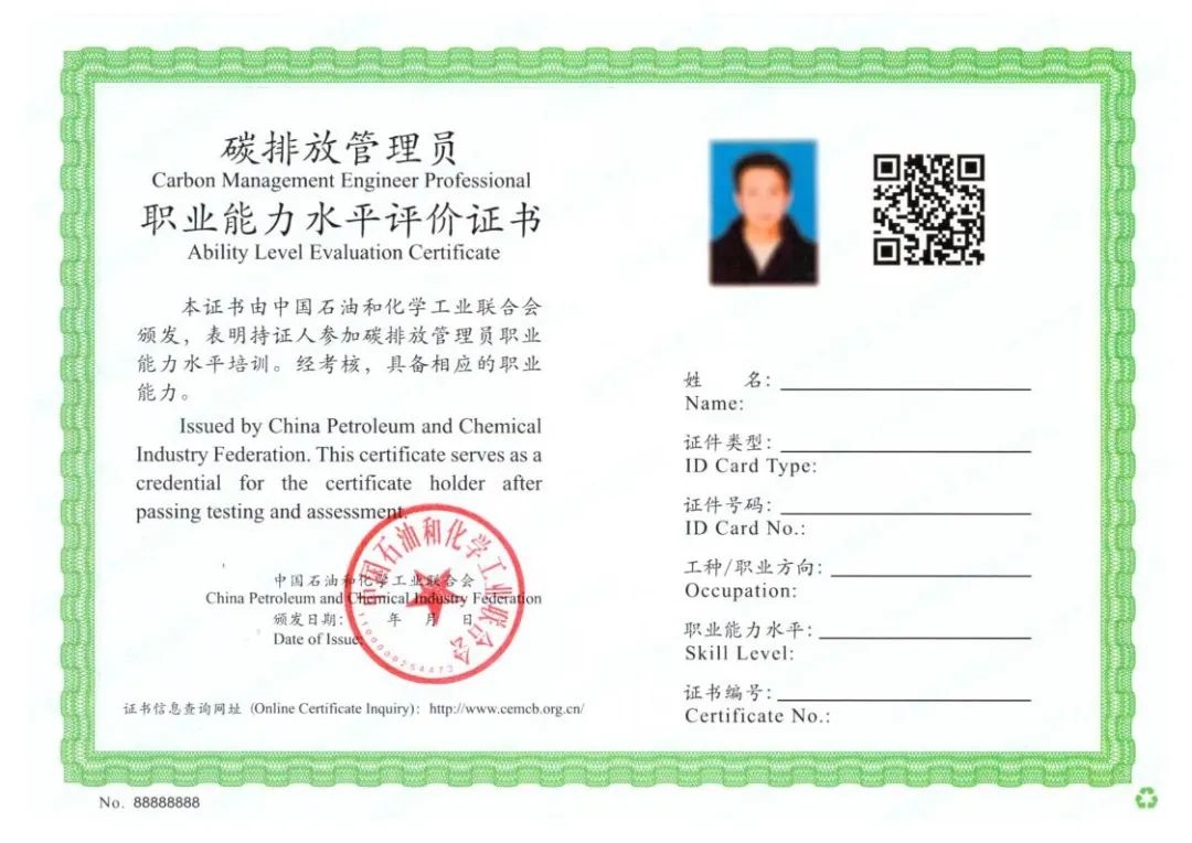 4.證書發(fā)放:參加線上培訓(xùn),完成相應(yīng)課程學(xué)習(xí)且考試合格者,將獲得中國石油和化學(xué)工業(yè)聯(lián)合會(huì)頒發(fā)的“碳排放管理員職業(yè)能力水平評(píng)價(jià)證書”,證書查詢網(wǎng)站:http://www.cemcb.org.cn。