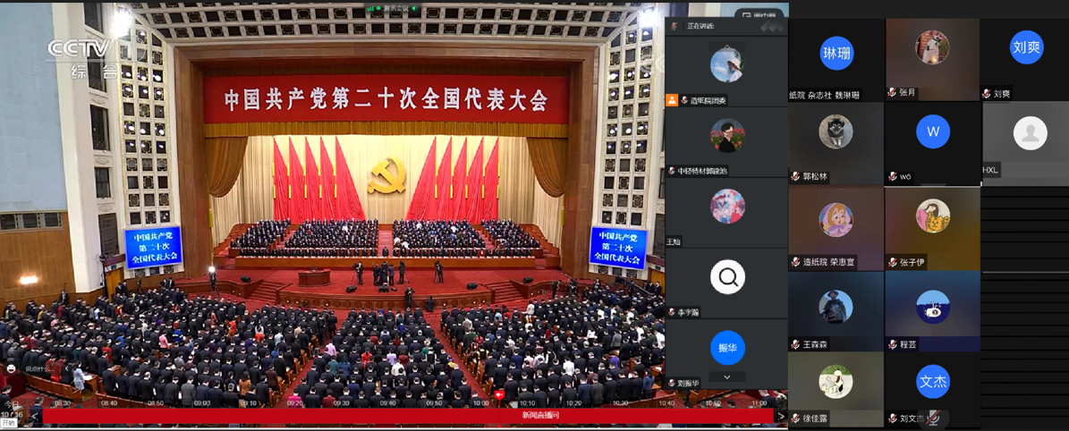 10月16日上午10時(shí),中國共產(chǎn)黨第二十次全國代表大會(huì)在北京隆重召開,習(xí)近平總書記代表十九屆中央委員會(huì)向大會(huì)作報(bào)告。中國造紙?jiān)狐h委組織全系統(tǒng)廣大黨員、團(tuán)員、職工通過電視、網(wǎng)絡(luò)等媒介,收看收聽黨的二十大盛況,聆聽習(xí)近平總書記重要講話,第一時(shí)間學(xué)習(xí)領(lǐng)會(huì)大會(huì)精神。