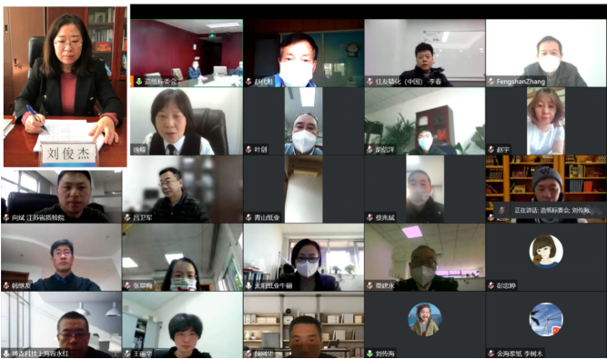 2022年12月27日至28日,全國造紙工業(yè)標準化技術(shù)委員會(以下簡稱造紙標委會)第五屆五次會議以視頻會議的形式順利召開。出席本次會議的領(lǐng)導(dǎo)有國家市場監(jiān)督管理總局標準技術(shù)管理司食品消費品標準處馬勝男處長;造紙標委會主任委員、中國造紙協(xié)會趙偉理事長;造紙標委會副主任委員、中國輕工業(yè)聯(lián)合會郭永新秘書長;造紙標委會副主任委員、保利中輕總經(jīng)理助理、中國造紙院董事長孫波;以及標委會委員、標準編制組專家、起草單位代表、秘書處工作人員共190余人出席了會議。會議由造紙標委會秘書處承擔(dān)單位中國制漿造紙研究院(以下簡稱中國造紙院)副總經(jīng)理劉俊杰主持。