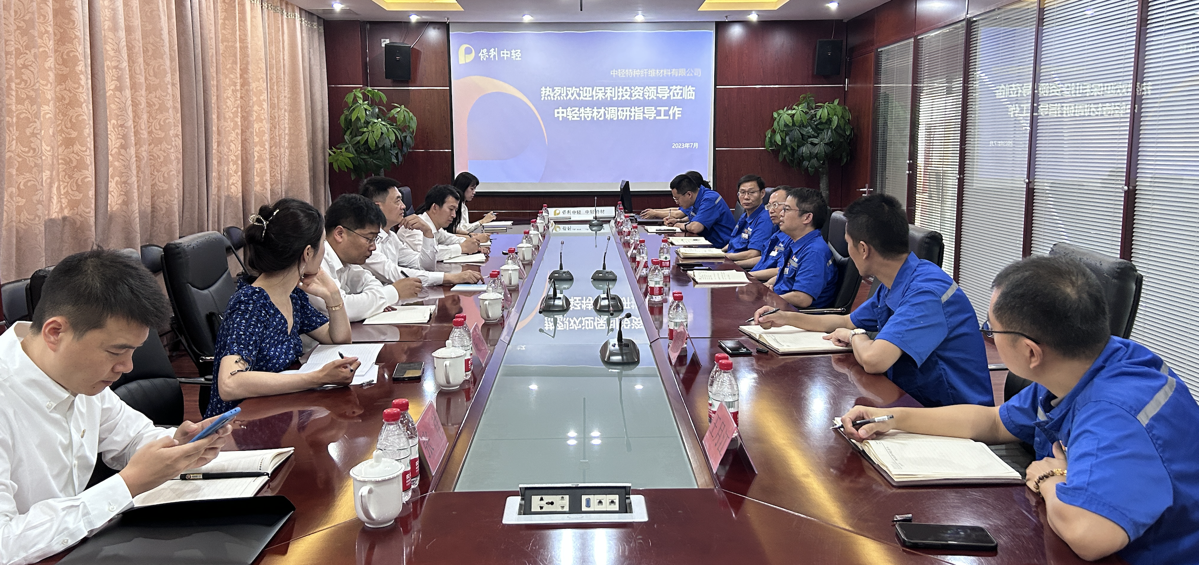 2023年7月10日,保利投資控股有限公司(以下簡稱“保利投資”)副總經(jīng)理王雷一行到訪中輕特種纖維材料有限公司(以下簡稱“中輕特材”),與中輕特材開展“借助資本市場力量,助力創(chuàng)新高質發(fā)展”為主題的黨建聯(lián)建活動。中輕特材總經(jīng)理趙濤攜領導班子成員與王雷一行會談交流。
