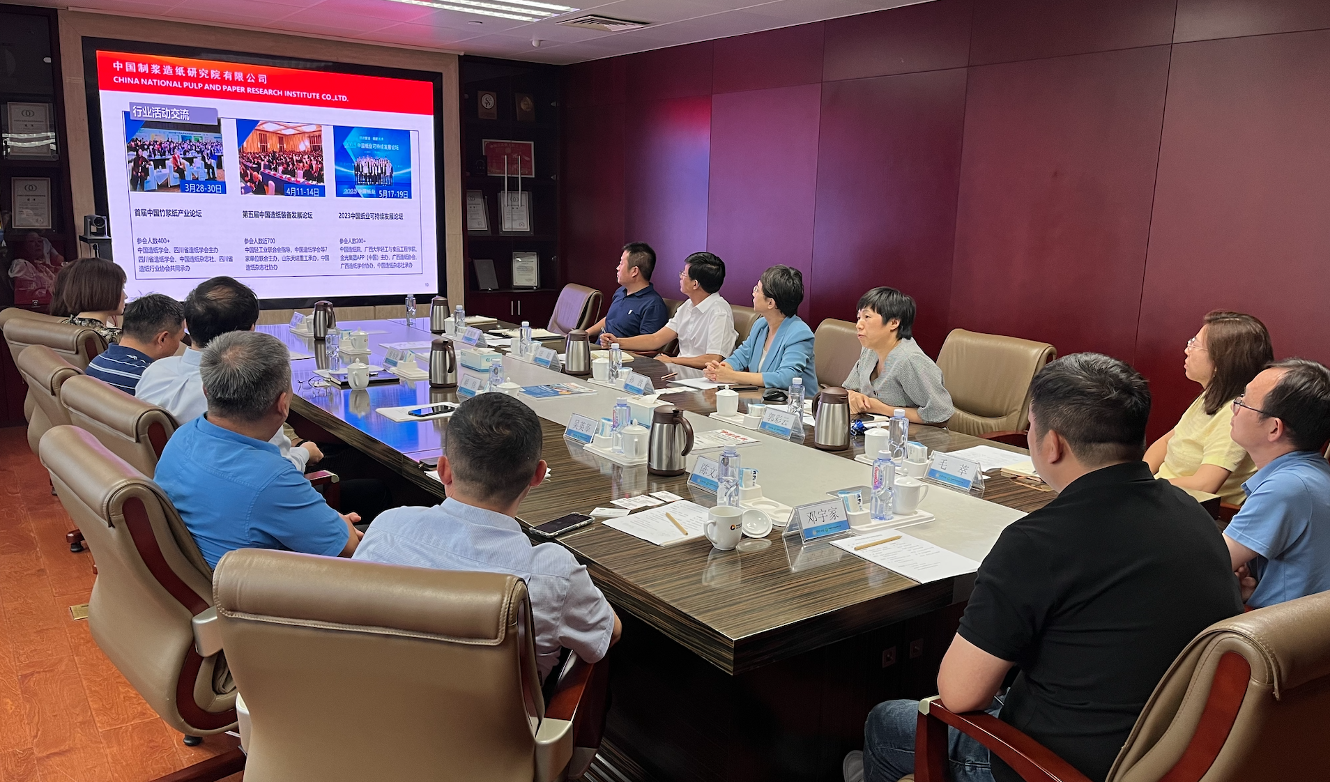 7月12日,亞太森博商務(wù)總裁胡偉一行7人到訪中國(guó)制漿造紙研究院(以下簡(jiǎn)稱“中國(guó)造紙?jiān)?rdquo;),保利中輕總經(jīng)理助理、中國(guó)造紙?jiān)憾麻L(zhǎng)孫波攜相關(guān)業(yè)務(wù)部門負(fù)責(zé)人與胡偉一行會(huì)談交流。