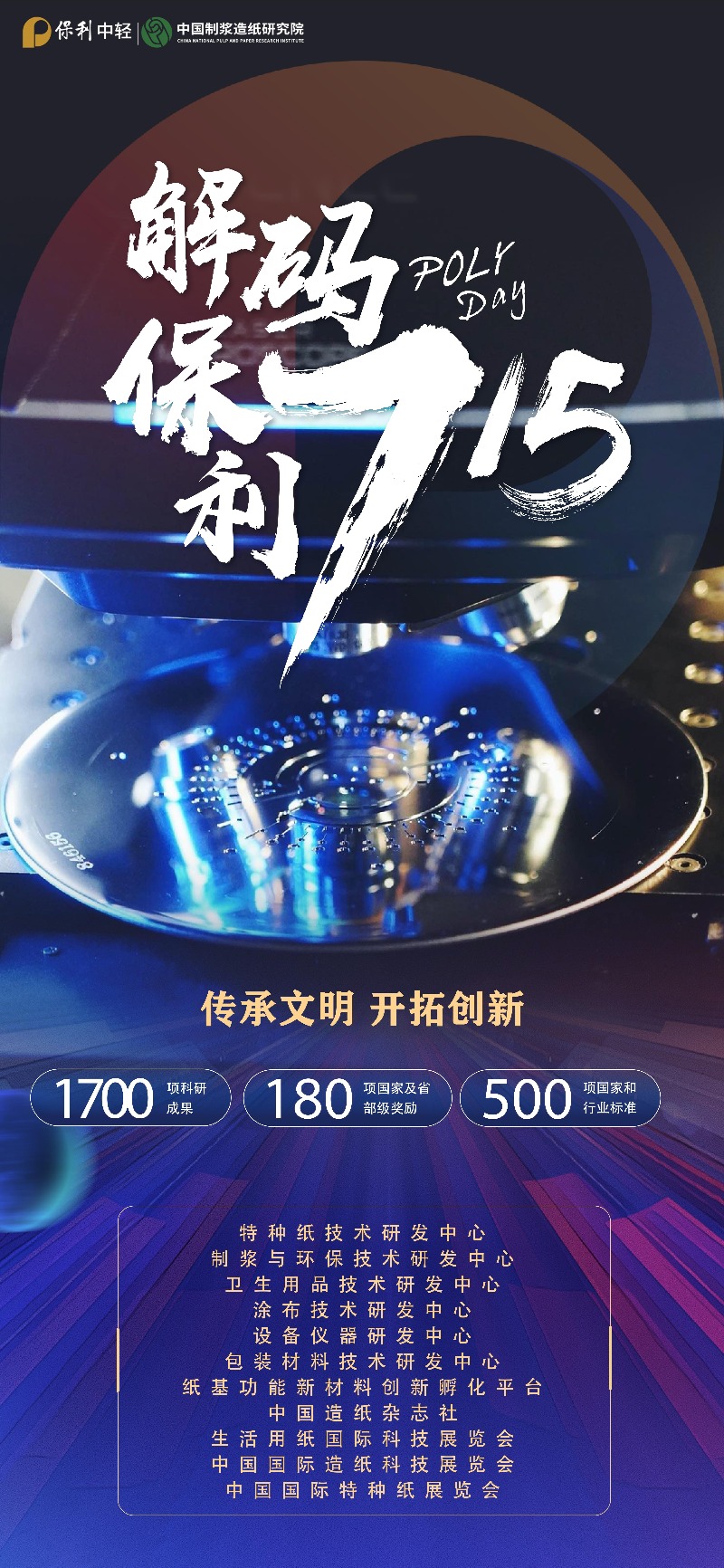 今年的7.15保利日,我們將一起感受保利的厚度、高度、精度、力度和態(tài)度,領略“一個保利,萬般美好”的保利品牌家族。作為保利家族的一員,中國造紙院面向社會公眾,組織開展“傳承文明,科普‘慧’民”系列活動。