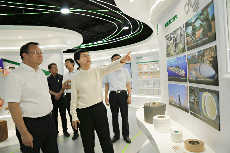 河北省廊坊市科技局機(jī)關(guān)黨委專職副書記郭麗虹、科技局協(xié)同創(chuàng)新辦暨平臺(tái)合作科負(fù)責(zé)人張紀(jì)峰;中國(guó)造紙?jiān)狐h委委員、副總經(jīng)理田超,總經(jīng)理助理、中輕特種纖維材料有限公司總經(jīng)理趙濤等陪同交流。