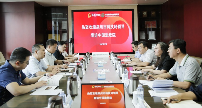 7月20日,泉州市科技局黨組成員、四級(jí)調(diào)研員林清京一行五人到訪中國制漿造紙研究院(以下簡(jiǎn)稱“中國造紙?jiān)?rdquo;)。中國造紙?jiān)焊笨偨?jīng)理劉俊杰攜中輕(晉江)衛(wèi)生用品研究有限公司(以下簡(jiǎn)稱“中輕衛(wèi)品”)及相關(guān)業(yè)務(wù)部門負(fù)責(zé)人與林清京一行座談交流。