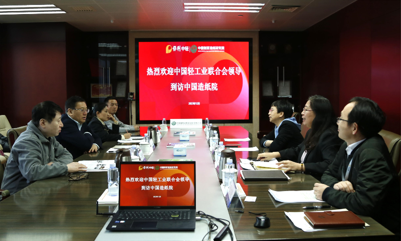 12月20日,中國輕工業(yè)聯(lián)合會副會長劉江毅、質(zhì)量標(biāo)準(zhǔn)部副主任劉晶晶、質(zhì)量標(biāo)準(zhǔn)部副主任王旭華到訪中國制漿造紙研究院(以下簡稱“中國造紙?jiān)?rdquo;)調(diào)研交流。保利中輕副總經(jīng)理、中國造紙?jiān)狐h委書記、董事長孫波,中國造紙?jiān)焊笨偨?jīng)理劉俊杰攜標(biāo)準(zhǔn)化管理中心部門負(fù)責(zé)人陪同座談交流。