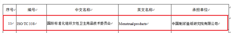 近日,中國造紙院獲批承擔(dān)“國際標(biāo)準(zhǔn)化組織女性衛(wèi)生用品技術(shù)委員會(ISO/TC 338)”國內(nèi)技術(shù)對口單位。