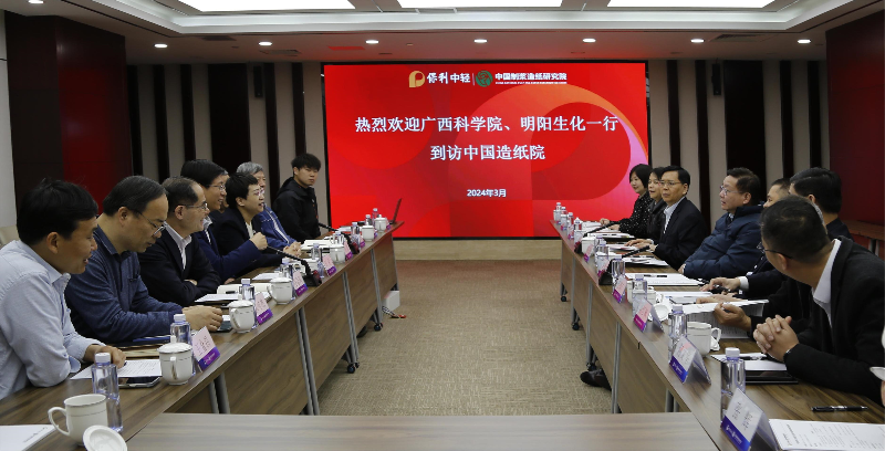 3月20日,非糧生物質(zhì)能技術(shù)全國重點實驗室主任黃日波,廣西科學(xué)院副院長、非糧生物質(zhì)能技術(shù)全國重點實驗室常務(wù)副主任黃志民,廣西農(nóng)墾明陽生化有限公司(以下簡稱明陽生化)董事長陳明育、總經(jīng)理玉瓊廣一行到訪中國制漿造紙研究院(以下簡稱中國造紙院)。