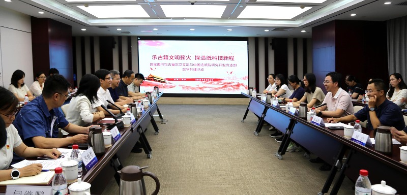 為深化黨建引領(lǐng),推動(dòng)跨領(lǐng)域協(xié)同創(chuàng)新,8月26日下午,國家圖書館古籍館黨支部與中國制漿造紙研究院(以下簡稱“中國造紙?jiān)?rdquo;)研究開發(fā)黨支部在中國造紙?jiān)郝?lián)合開展“承古籍文明薪火 探造紙科技新程”主題黨日活動(dòng)。