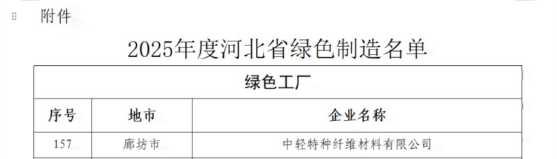 近日,河北省工業(yè)和信息化廳公示了2025年度省級綠色制造名單,中國制漿造紙研究院所屬中輕特種纖維材料有限公司(以下簡稱“中輕特材”)憑借其在綠色生產(chǎn)、節(jié)能減排和可持續(xù)發(fā)展方面的突出表現(xiàn)成功入選,成為本年度省級綠色制造體系的先進(jìn)典型之一。