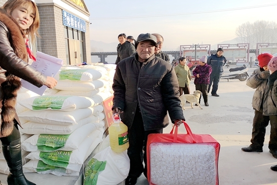 24日清晨,在副旗長(zhǎng)遲亞玲等旗有關(guān)負(fù)責(zé)同志陪同下,慰問組赴王爺府鎮(zhèn)希莊村,代表中輕集團(tuán)向希莊村捐贈(zèng)產(chǎn)業(yè)扶貧資金22萬元,并為70歲以上老人送上米、面、油和保暖棉被等物資。王珂靈在寒冬中發(fā)表熱情洋溢的講話,傳遞中輕集團(tuán)黨委的深情厚誼,溫暖了貧困群眾的心田。