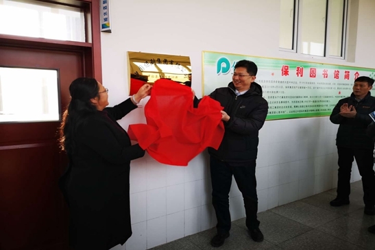 隨后,慰問組來到王爺府鎮(zhèn)蒙古族學(xué)校,參加保利集團(tuán)·中輕集團(tuán)“保利愛心圖書館”揭牌儀式。中輕集團(tuán)總經(jīng)理助理、黨委辦公室主任肖金龍代表集團(tuán)公司為圖書館揭牌,并捐贈(zèng)價(jià)值1萬元的閱覽桌椅和4000冊(cè)愛心圖書。