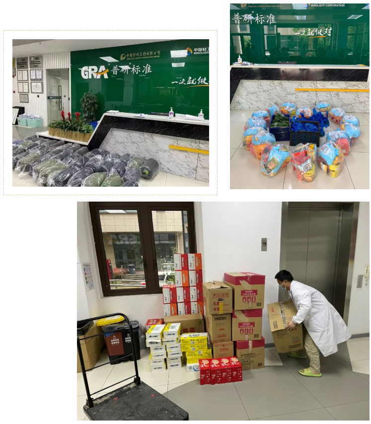 普研標(biāo)準(zhǔn)也積極做好充足的物資儲備,為堅(jiān)守一線的38位“防疫勇士”準(zhǔn)備一日三餐,提供牛奶、雞蛋等富含營養(yǎng)的食品,并備足拖鞋、毛巾等生活類物資。除了密切關(guān)注全體員工的身體狀況以外,公司積極了解大家的困難需求,為居家辦公的同事們共發(fā)放368份由蔬菜、水果、肉類等組成的“愛心大禮包”。