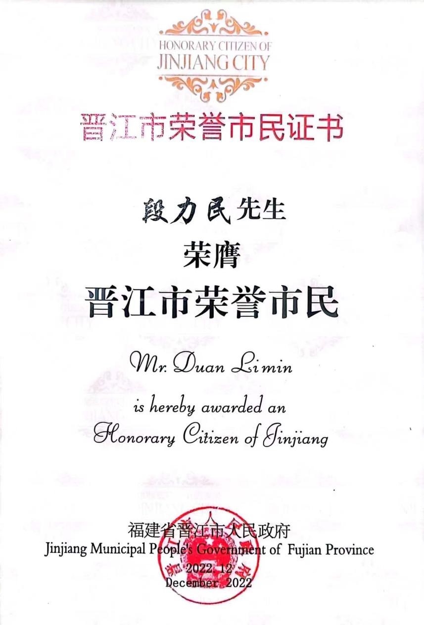 近日,福建省晉江市人民政府公布2022年度“晉江市榮譽市民”稱號人選8人,保利中輕所屬中國皮革制鞋研究院黨委書記、總經(jīng)理,中國皮革制鞋院晉江公司董事長段力民榜上有名,被授予“晉江市榮譽市民”稱號。