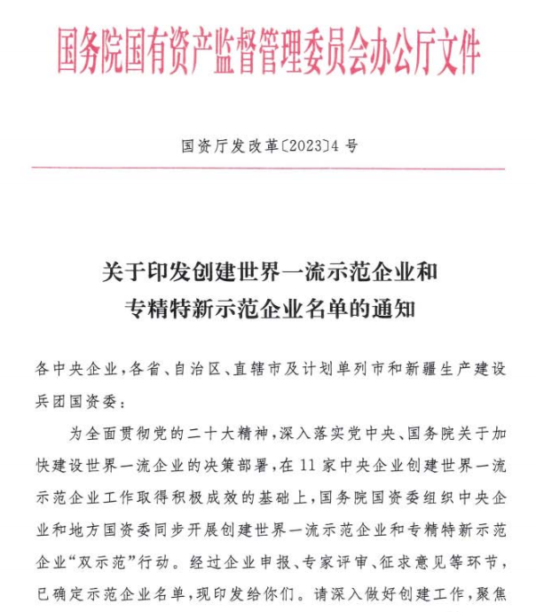 創(chuàng)建世界一流專精特新示范企業(yè)是國務院國資委貫徹黨中央、國務院關于加快建設世界一流企業(yè)決策部署,深化創(chuàng)建示范、管理提升、價值創(chuàng)造、品牌引領“四個專項行動”的重要內(nèi)容,旨在選取全國范圍內(nèi)專業(yè)突出、創(chuàng)新驅(qū)動、管理精益、特色明顯的世界一流專精特新企業(yè),發(fā)揮示范帶動作用,推動國資國企改革專項落地。