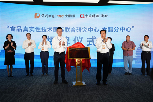 在與會領導和嘉賓共同見證下,太原市人大常委會副主任、清徐縣委書記王劍峰與中輕檢驗總經(jīng)理趙紅峰共同為“食品真實性(FA)技術國際聯(lián)合研究中心——食醋分中心”揭牌。