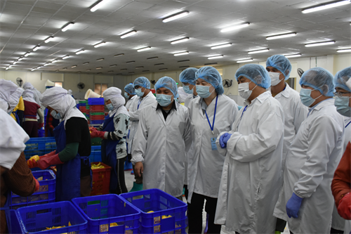 此外,曹春昱一行還赴金邊本地Kirirom食品加工廠和KHMER BEVERAGES啤酒公司進行調(diào)研考察,參觀了芒果干生產(chǎn)車間、啤酒生產(chǎn)線及檢測實驗室,與企業(yè)相關(guān)負責人進行深入交流。雙方就芒果制品深加工,特別是在芒果飲料、芒果酵素等新產(chǎn)品開發(fā)和技術(shù)交流方面合作,達成初步合作意向。