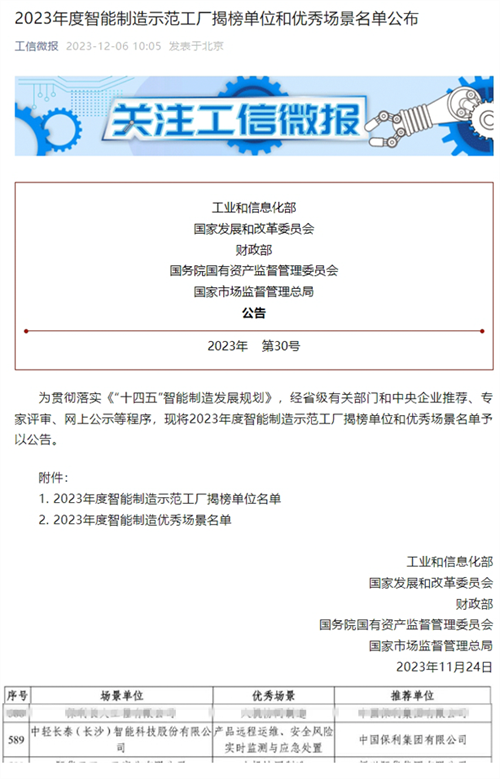 近日,工業(yè)和信息化部公布“2023年度智能制造示范工廠揭榜單位和優(yōu)秀場景名單”。保利中輕所屬中輕長泰研發(fā)的“產(chǎn)品遠程運維”和“安全風險實時監(jiān)測與應(yīng)急處置”成功入選智能制造優(yōu)秀場景名單,凸顯中輕長泰在智能制造領(lǐng)域的顯著成績。