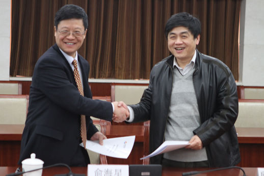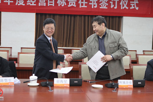 俞海星總經(jīng)理與海誠股份總裁嚴曉儉簽訂責任書