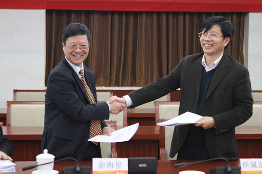 俞海星總經(jīng)理與日化院院長王萬緒簽訂責任書