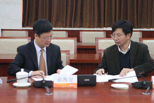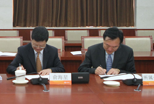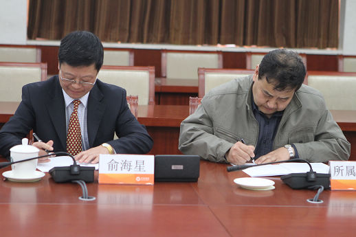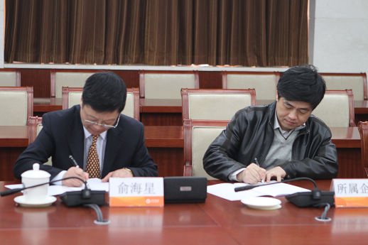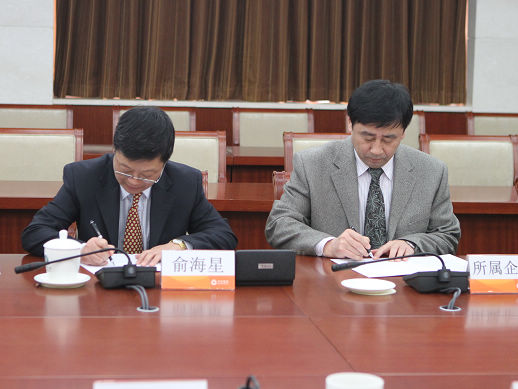 集團公司總經(jīng)理俞海星與日化院院長王萬緒簽訂任務合同書