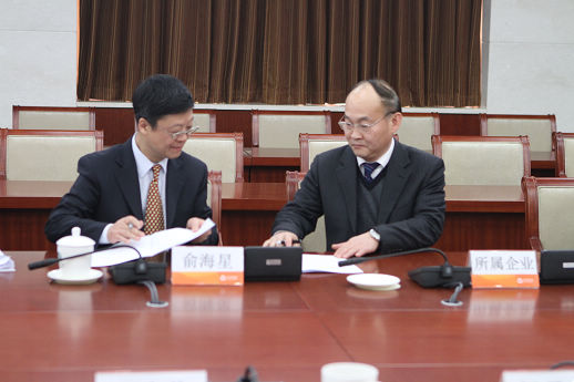 集團公司總經(jīng)理俞海星與食品院黨委書記董守誠簽訂任務合同書