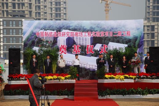 2012年10月12日,俞海星總經(jīng)理出席了中國(guó)制漿造紙研究院廊坊工程實(shí)驗(yàn)室項(xiàng)目二期工程開(kāi)工奠基儀式。俞總在致辭中對(duì)造紙?jiān)豪确豁?xiàng)目建設(shè)工作給予了充分肯定,對(duì)長(zhǎng)期以來(lái)關(guān)心和支持中輕集團(tuán)發(fā)展,特別是關(guān)心和支持該項(xiàng)目籌備實(shí)施的廊坊市各級(jí)領(lǐng)導(dǎo)和部門(mén)表示了感謝,并向?yàn)楣こ涕_(kāi)工付出辛勤勞動(dòng)的一線干部職工表示了慰問(wèn)。他希望項(xiàng)目承建單位要切實(shí)增強(qiáng)緊迫感和責(zé)任感,嚴(yán)格工程管理,確保安全、質(zhì)量和進(jìn)度,力爭(zhēng)把項(xiàng)目建設(shè)成為廊坊科技谷的標(biāo)志性、樣板性工程。中國(guó)制漿造紙研究院院長(zhǎng)曹春昱和廊坊科技谷有關(guān)領(lǐng)導(dǎo)也分別在儀式上致辭。