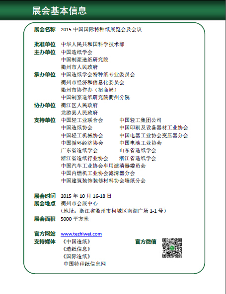 “2015中國國際特種紙展覽會(huì)及會(huì)議”參展邀請函