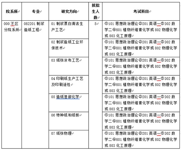 中國(guó)制漿造紙研究院有限公司二〇一九年碩士研究生招生專業(yè)目錄