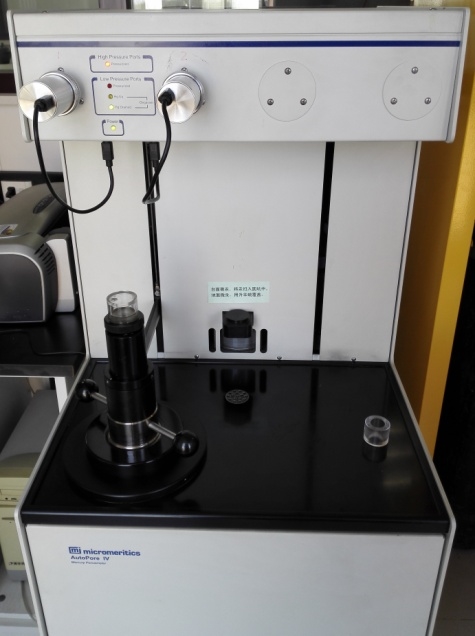 技術(shù)參數(shù):壓汞儀。兩個(gè)低壓站,一個(gè)高壓站,工作最高壓力228MPa,測試的孔徑范圍(D)50A~100μm,低壓精度至少0.1Psi,高壓精度至少1Psi。