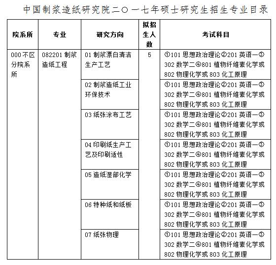 ? ?中國制漿造紙研究院面向全國招生,2017年計(jì)劃招收碩士學(xué)位研究生5名。