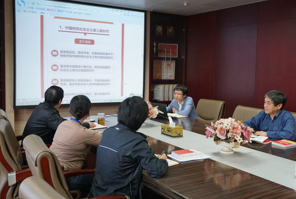 會(huì)上,黨委副書記孫波帶領(lǐng)大家學(xué)習(xí)了十九大報(bào)告,對(duì)十九大報(bào)告的主題、內(nèi)容、性質(zhì)做了詳細(xì)闡述。她強(qiáng)調(diào),黨的十九大是全面建成小康社會(huì)決勝階段、中國特色社會(huì)主義進(jìn)入新時(shí)代的關(guān)鍵時(shí)期召開的一次十分重要的會(huì)議。學(xué)習(xí)十九大報(bào)告精神是當(dāng)前和今后一個(gè)時(shí)期的首要政治任務(wù)。作為國企領(lǐng)導(dǎo),要深入學(xué)習(xí)貫徹黨的十九大精神,結(jié)合企業(yè)實(shí)際,立足改革發(fā)展,加強(qiáng)黨的建設(shè),全力以赴在各項(xiàng)工作中邁上新臺(tái)階。