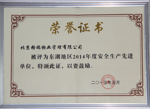 7月16日上午,在東湖街道辦事處召開的2015年上半年安全生產(chǎn)工作會議上,中國制漿造紙研究院所屬北京格瑞物業(yè)管理有限公司被授予“東湖地區(qū)2014年度安全生產(chǎn)先進單位”榮譽稱號。