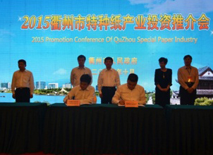 10月16日下午,舉辦了2015特種紙產業(yè)發(fā)展和節(jié)能減排高峰論壇。首先進行的是衢州市特種紙產業(yè)投資推介會,會上推出了11個項目和簽約儀式。在中國造紙學會常務副理事長曹振雷、中國造紙協會副理事兼秘書長趙偉及衢州市政府領導的見證下,中國制漿造紙研究院院長曹春昱、中國制漿造紙研究院黨委書記孫波、中國制漿造紙研究院衢州分院院長劉文等先后與衢州市政府及相關單位就有關項目進行了簽約。