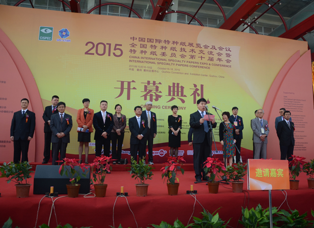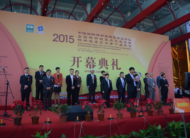 2015年10月16日9:30舉辦了隆重的開幕式。中國輕工業(yè)聯(lián)合會(huì)副會(huì)長(zhǎng)陳鄂生、中國造紙學(xué)會(huì)常務(wù)副理事長(zhǎng)曹振雷、中國造紙協(xié)會(huì)副理事長(zhǎng)兼秘書長(zhǎng)趙偉、中國制漿造紙研究院院長(zhǎng)曹春昱、中國造紙學(xué)會(huì)特種專業(yè)委員會(huì)主任李義民等行業(yè)領(lǐng)導(dǎo)、政府領(lǐng)導(dǎo)、地方協(xié)會(huì)、學(xué)會(huì)領(lǐng)導(dǎo)、大專院校教授、國外知名企業(yè)領(lǐng)導(dǎo)和參展企業(yè)代表等近20位知名人士出席了展覽會(huì)開幕式。