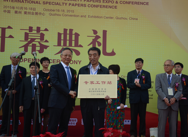 之后,舉行了中國造紙學(xué)會(huì)、浙江省科學(xué)技術(shù)協(xié)會(huì)專家工作站授牌儀式和浙江省造紙工業(yè)標(biāo)準(zhǔn)化技術(shù)委員會(huì)(籌)授牌儀式。其中,中國制漿造紙研究院衢州分院院長(zhǎng)劉文被授予“專家工作站”牌匾。