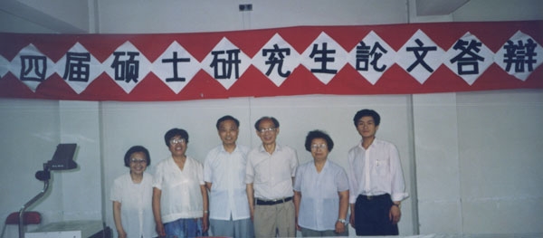 朱圣光作為碩士研究生學(xué)位評(píng)定委員會(huì)委員,在1994屆碩士研究生論文答辯會(huì)合影(左一)