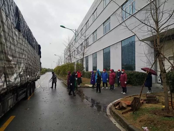 △2月14日,第一批愛心物資貨車發(fā)出,2月15日早晨抵達孝感。此時,湖北已經(jīng)在下大雪,孝感防控指揮部領(lǐng)導和志愿者們冒雪卸貨。2月16日防控指揮部陸續(xù)分批發(fā)放給23家醫(yī)院。