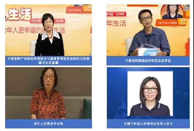 中國(guó)老齡產(chǎn)業(yè)協(xié)會(huì)醫(yī)養(yǎng)結(jié)合與健康管理委員會(huì)執(zhí)行主任兼秘書(shū)長(zhǎng)牟麗娜、可靠研究院福祉所研發(fā)總監(jiān)李揚(yáng)、天貓個(gè)護(hù)成人護(hù)理用品負(fù)責(zé)人有年、老年人消費(fèi)者平水英參與了直播,約4100多人次觀眾在線觀看,30余家知名大眾及行業(yè)媒體參與報(bào)道。精簡(jiǎn)后的科普短視頻將于10月15日至11月30 日在北京地鐵全線路多頻次播放。